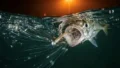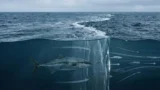 - エギ(赤テープ):光を吸収し、真っ黒なシルエットになる。